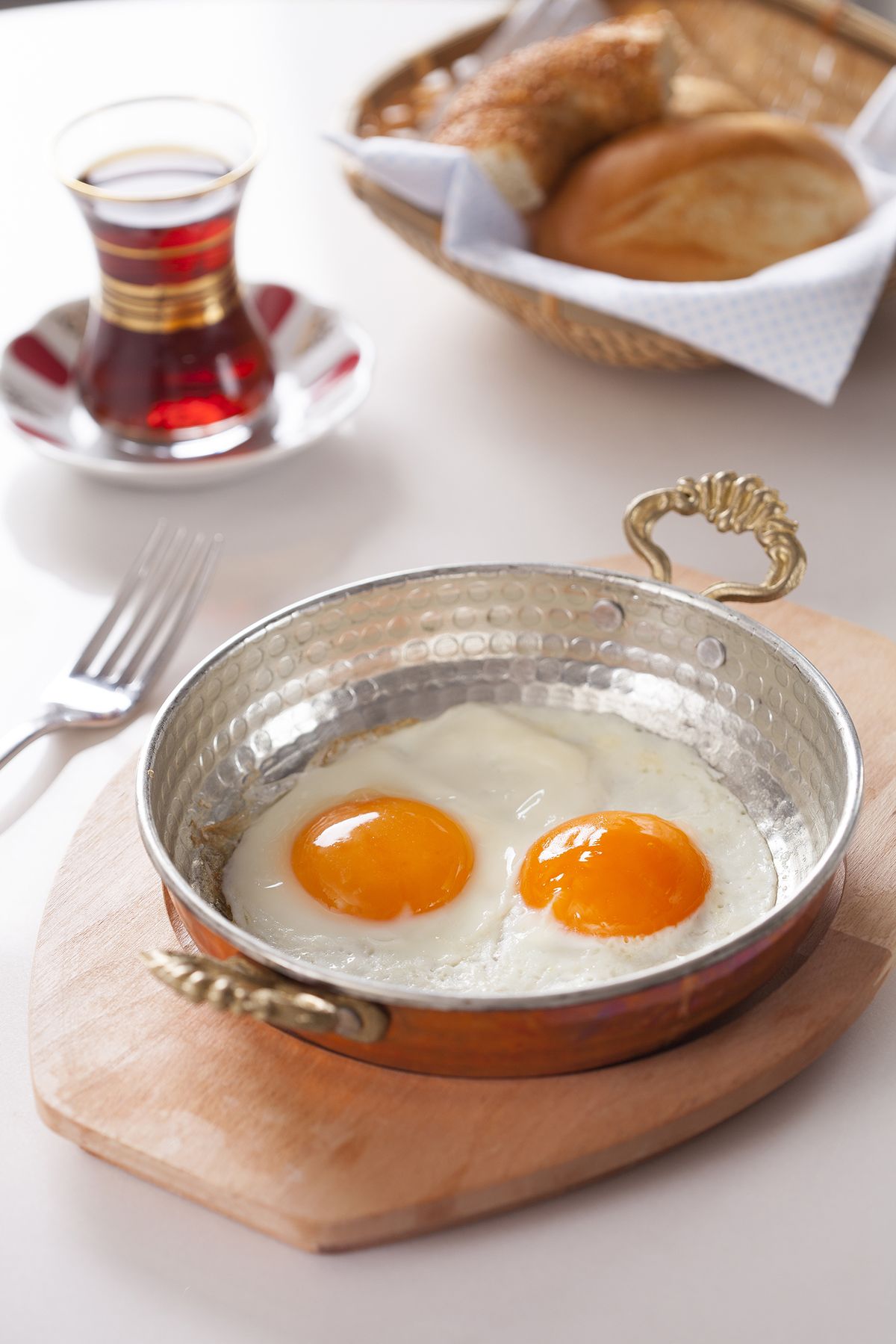 Geleneksel usulde sahanda pişirilmiş yumurta.