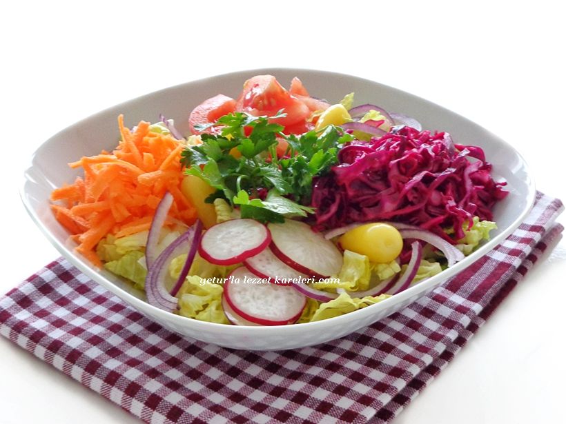Taze yeşillikler ve mevsim sebzeleriyle.